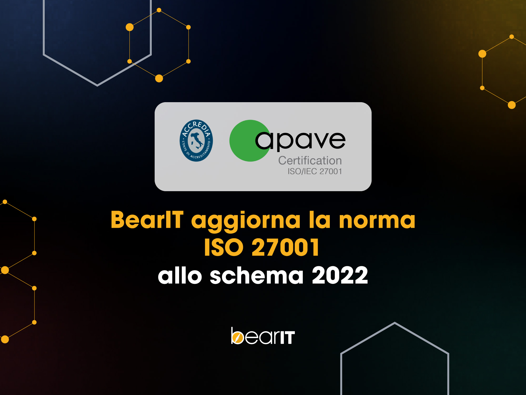 In un mondo sempre più interconnesso e digitale, la sicurezza delle informazioni è diventata una priorità assoluta. In un'ottica di miglioramento continuo, BearIT ha effettuato l’aggiornamento allo schema 2022 della norma ISO 27001. Questo comporta un adeguamento agli standard più recenti al fine di garantire una maggiore efficienza nella gestione della sicurezza dei dati.